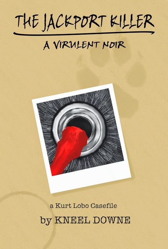 The Jackport Killer is the latest chronicle from Kneel Downe‘s ever-expanding Virulent Blurb universe. Best described as hardboiled poetic sci-fi, it’s one of the case files of Detective Kurt Lobo, a spliced man-wolf with lots of baggage and bags of attitude. Lobo investigates a ritualistic murder and finds himself embroiled in a story that dredges up his own past.